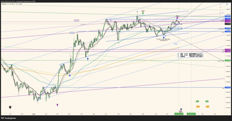• 週足NLと日足高値のゾーンでのPA注意。下位足の転換確認。